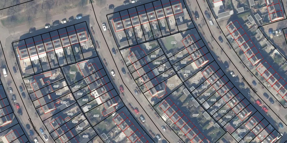 Gebruik de zoekbalk of klik op een perceel voor informatie over de adressen binnen dit perceel.
