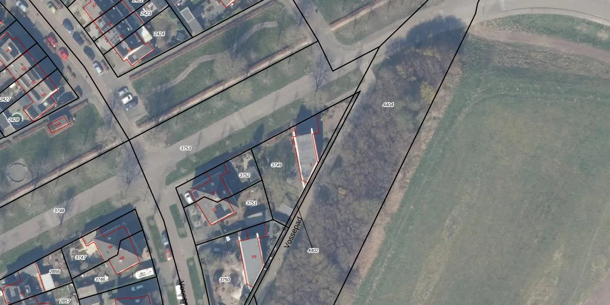 Het perceel waarop Vossepad 2 staat heeft een oppervlakte van 564 m². Dit is een groot perceel. De perceeloppervlakte wordt geregistreerd door het Kadaster. Gedetailleerde informatie over de maten van dit perceel kunt u vinden in het rapport Kadastrale kaart met maatvoering van Vossepad 2.