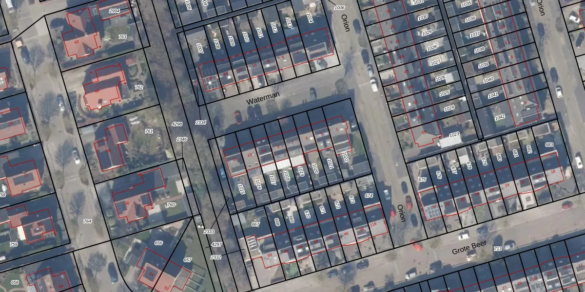 Gebruik de zoekbalk of klik op een perceel voor informatie over de adressen binnen dit perceel.