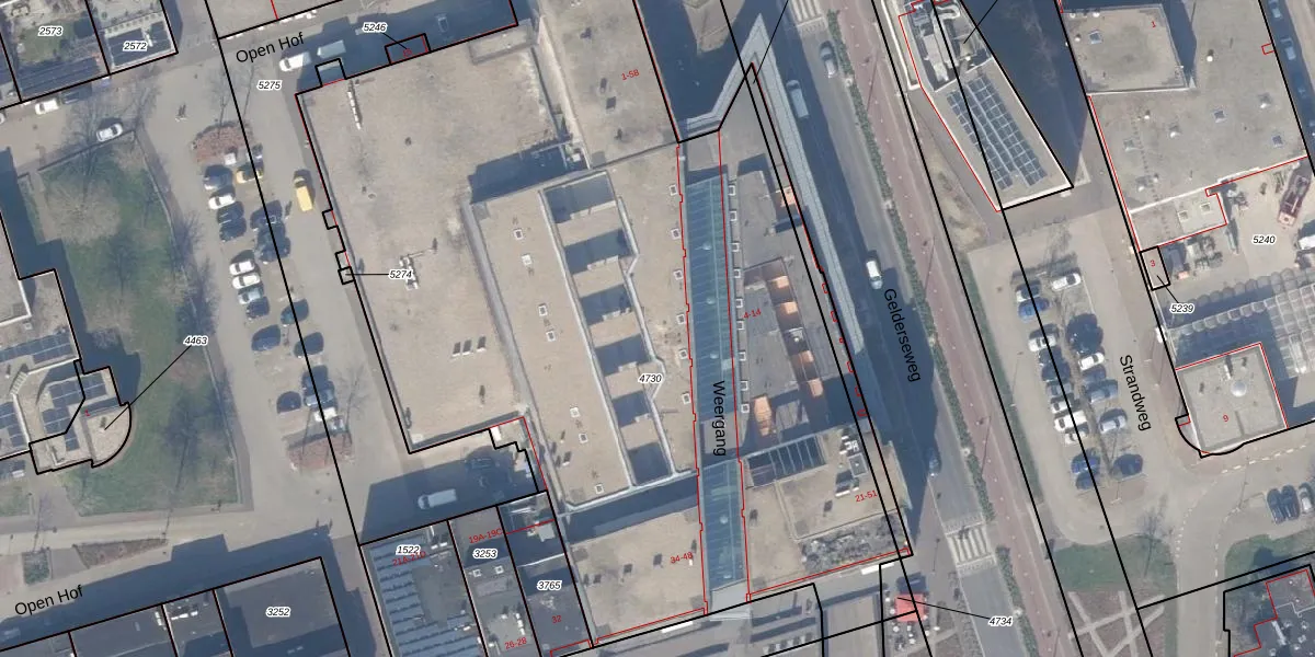Het adres is gelegen op perceel 4730 in de sectie A en de kadastrale gemeente Zeewolde. De kadastrale aanduiding is aldus ZWD03-A-4730. De gemiddelde perceelgrootte in Zeewolde is 1,9 ha. Dit perceel is kleiner: de perceeloppervlakte bedraagt 6043 m². De grootste perceeloppervlakte in de kadastrale gemeente is 6,16 km². De kleinste oppervlakte bedraagt 0 m². Er zijn 76 adressen aanwezig op het perceel. In de Basisregistratie Kadaster (BRK) werden de grenzen van het perceel geregistreerd op 05-11-2009.