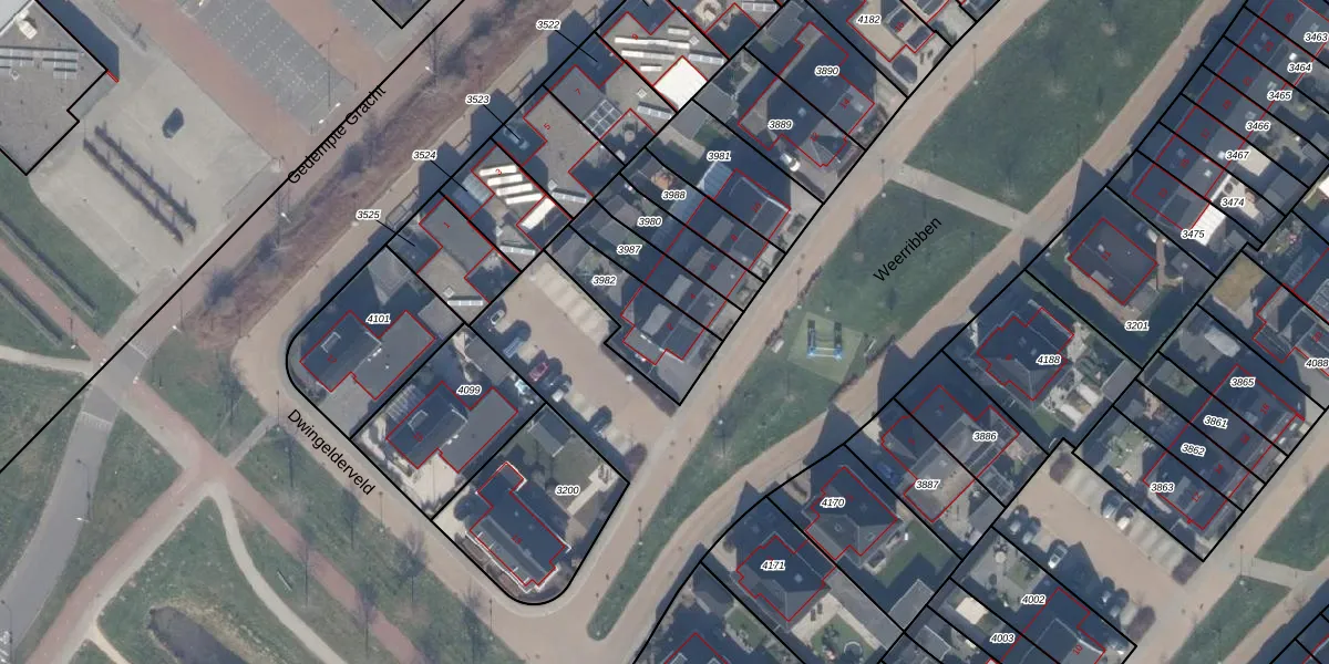 Het adres is gelegen op perceel 3982 in de sectie E en de kadastrale gemeente Zeewolde. De kadastrale aanduiding is aldus ZWD03-E-3982. Het perceel is kleiner dan gemiddeld in Zeewolde. Het perceel is 255 m² groot, terwijl het gemiddelde ligt op 1,9 ha. Het grootste perceel in de kadastrale gemeente is 6,16 km². Het kleinste perceel heeft een oppervlakte van 0 m². Dit is het enige adres dat aanwezig is op het perceel. De huidige grenzen van het perceel zijn digitaal in de Basisregistratie Kadaster (BRK) geregistreerd op 03-05-2019.