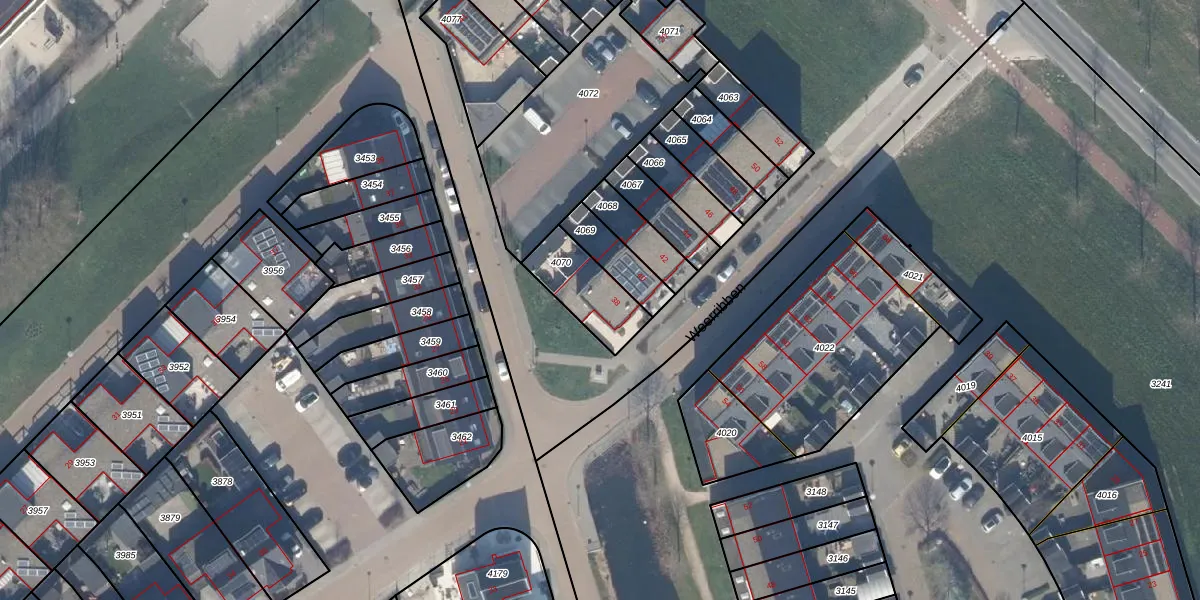 Gebruik de zoekbalk of klik op een perceel voor informatie over de adressen binnen dit perceel.