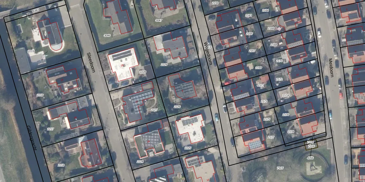 Gebruik de zoekbalk of klik op een perceel voor informatie over de adressen binnen dit perceel.