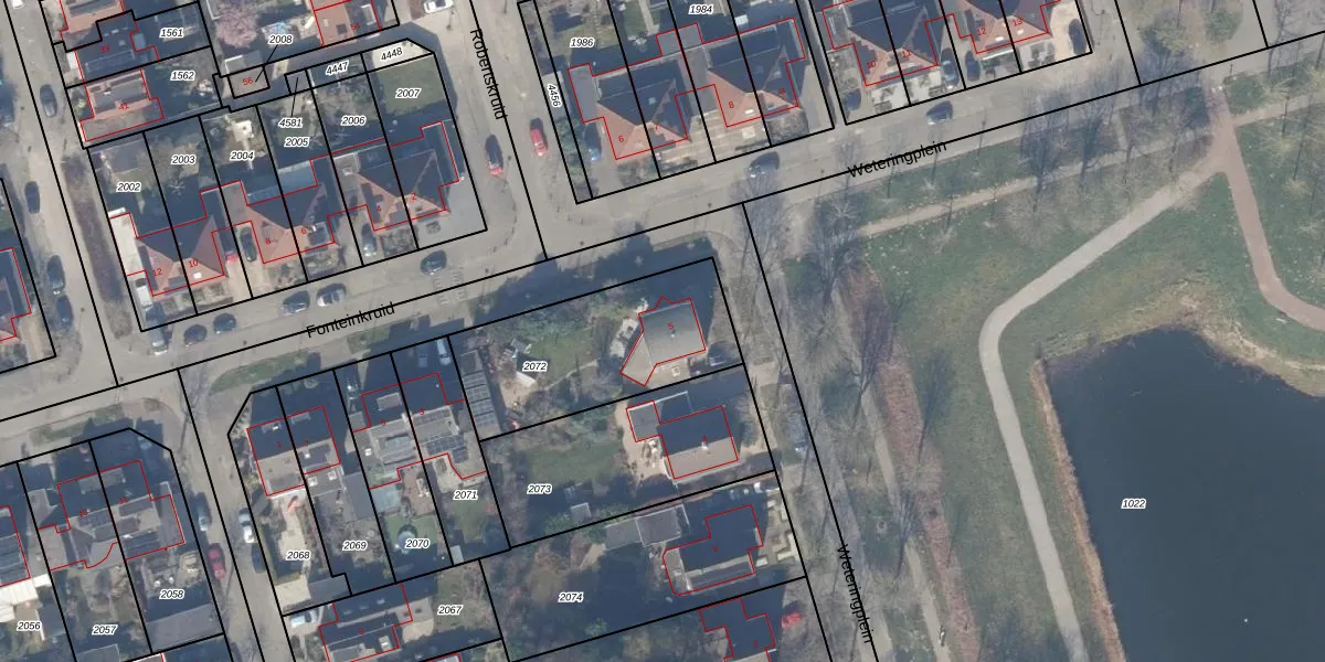 Weteringplein 5 is gelegen op kadastraal perceel ZWD03A2072. Deze kadastrale aanduiding is uniek en wordt gebruikt door het Kadaster om eigendomsrechten en andere zakelijke rechten vast te leggen. Het perceel maakt onderdeel uit van de kadastrale gemeente Zeewolde.
