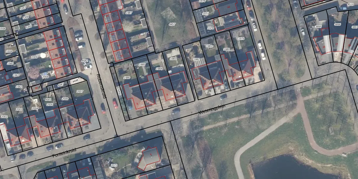 Het perceel waarop Weteringplein 9 staat heeft een oppervlakte van 312 m². Dit is een groot perceel. De perceeloppervlakte wordt geregistreerd door het Kadaster. Gedetailleerde informatie over de maten van dit perceel kunt u vinden in het rapport Kadastrale kaart met maatvoering van Weteringplein 9.