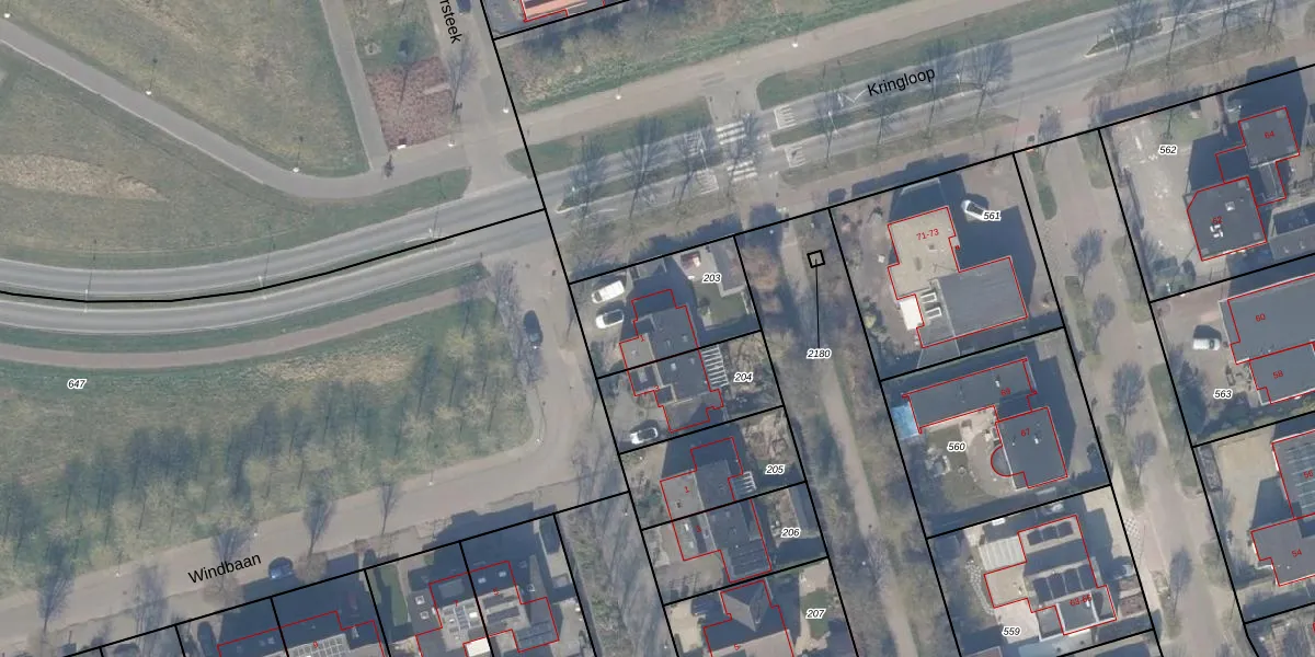 Het perceel waarop Windbaan 1 staat heeft een oppervlakte van 394 m². Dit is een groot perceel. De perceeloppervlakte wordt geregistreerd door het Kadaster. Gedetailleerde informatie over de maten van dit perceel kunt u vinden in het rapport Kadastrale kaart met maatvoering van Windbaan 1.