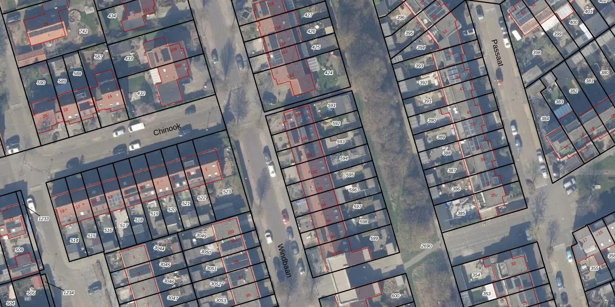 Gebruik de zoekbalk of klik op een perceel voor informatie over de adressen binnen dit perceel.