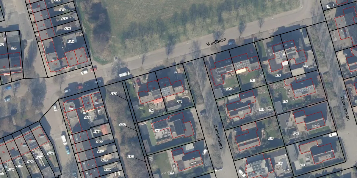 Het perceel waarop Windbaan 13 staat heeft een oppervlakte van 403 m². Dit is een groot perceel. De perceeloppervlakte wordt geregistreerd door het Kadaster. Gedetailleerde informatie over de maten van dit perceel kunt u vinden in het rapport Kadastrale kaart met maatvoering van Windbaan 13.