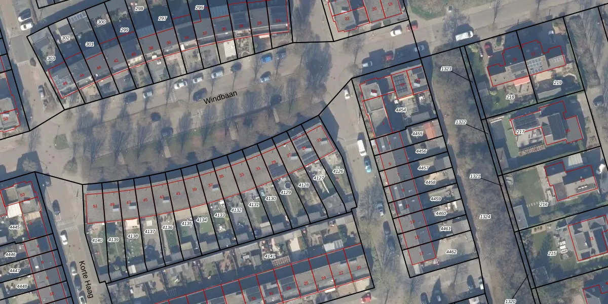 Het perceel waarop Windbaan 25 staat heeft een oppervlakte van 187 m². Dit is een middelgroot perceel. De perceeloppervlakte wordt geregistreerd door het Kadaster. Gedetailleerde informatie over de maten van dit perceel kunt u vinden in het rapport Kadastrale kaart met maatvoering van Windbaan 25.
