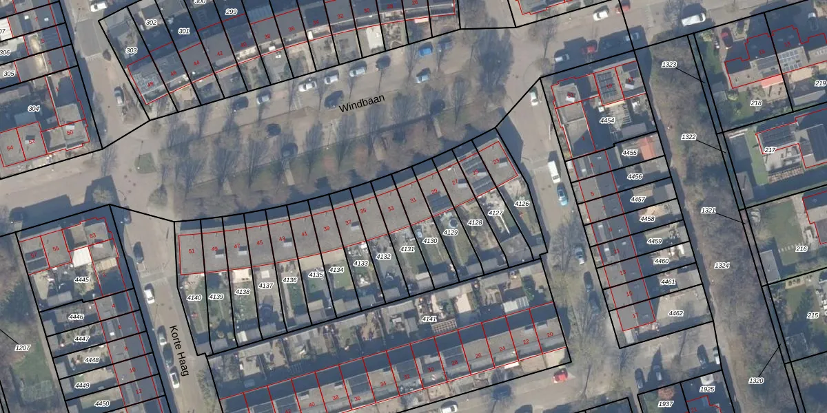 Het perceel waarop Windbaan 31 staat heeft een oppervlakte van 173 m². Dit is een middelgroot perceel. De perceeloppervlakte wordt geregistreerd door het Kadaster. Gedetailleerde informatie over de maten van dit perceel kunt u vinden in het rapport Kadastrale kaart met maatvoering van Windbaan 31.