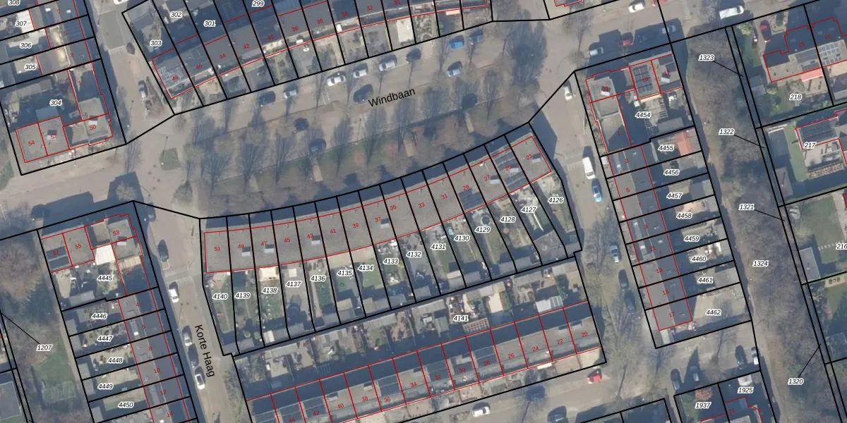 Het perceel waarop Windbaan 33 staat heeft een oppervlakte van 171 m². Dit is een middelgroot perceel. De perceeloppervlakte wordt geregistreerd door het Kadaster. Gedetailleerde informatie over de maten van dit perceel kunt u vinden in het rapport Kadastrale kaart met maatvoering van Windbaan 33.