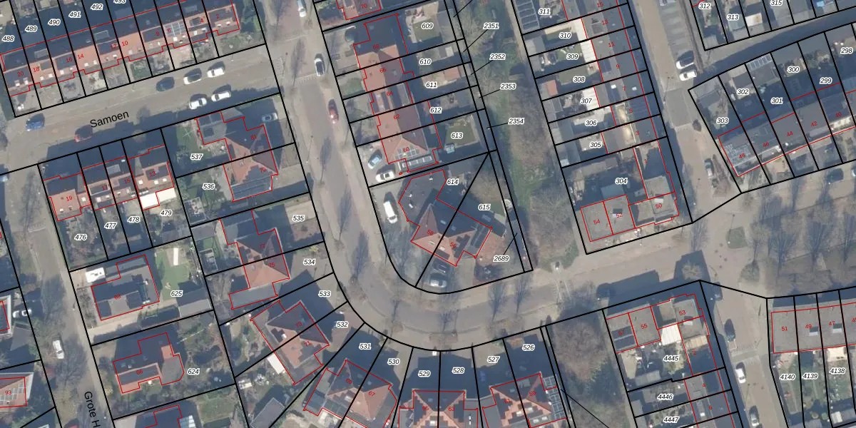 Het perceel waarop het adres ligt is ZWD03-E-614. De afkorting 'ZWD03' staat voor kadastrale gemeente Zeewolde. Het perceel is 413 m² groot. Dat is kleiner dan de gemiddelde perceeloppervlakte in Zeewolde, dat op 1,9 ha ligt. De grootste perceeloppervlakte in de kadastrale gemeente is 6,16 km². De kleinste oppervlakte bedraagt 0 m². Op het perceel bevinden zich geen andere adressen. In de Basisregistratie Kadaster (BRK) werden de grenzen van het perceel geregistreerd op 10-09-2007.