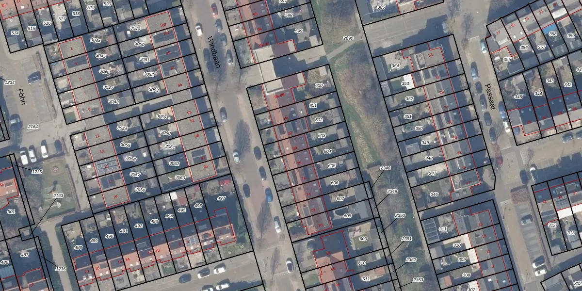 Gebruik de zoekbalk of klik op een perceel voor informatie over de adressen binnen dit perceel.
