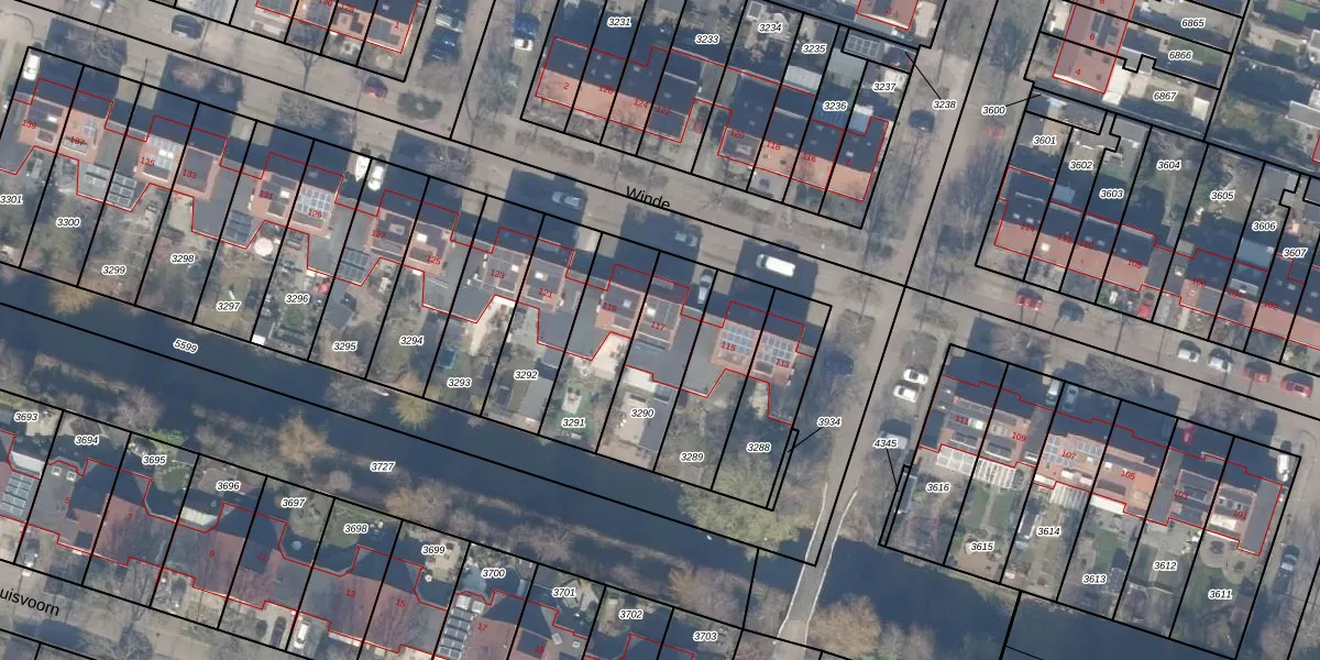 Het perceel waarop Winde 117 staat heeft een oppervlakte van 296 m². Dit is een middelgroot perceel. De perceeloppervlakte wordt geregistreerd door het Kadaster. Gedetailleerde informatie over de maten van dit perceel kunt u vinden in het rapport Kadastrale kaart met maatvoering van Winde 117.