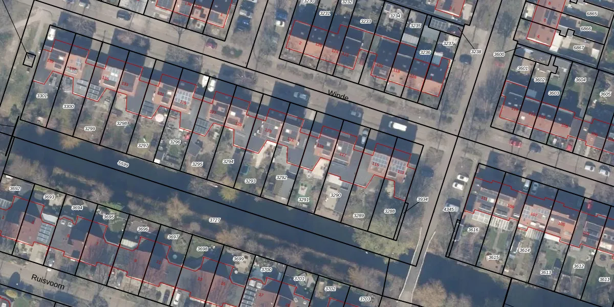 Het perceel waarop Winde 119 staat heeft een oppervlakte van 296 m². Dit is een middelgroot perceel. De perceeloppervlakte wordt geregistreerd door het Kadaster. Gedetailleerde informatie over de maten van dit perceel kunt u vinden in het rapport Kadastrale kaart met maatvoering van Winde 119.