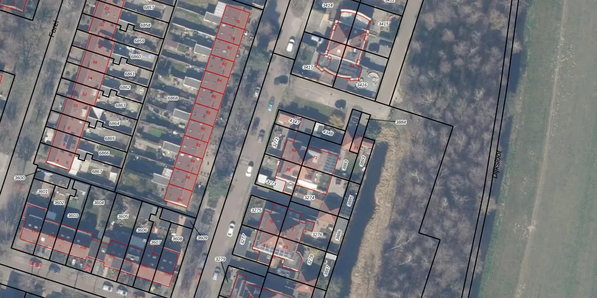 Gebruik de zoekbalk of klik op een perceel voor informatie over de adressen binnen dit perceel.