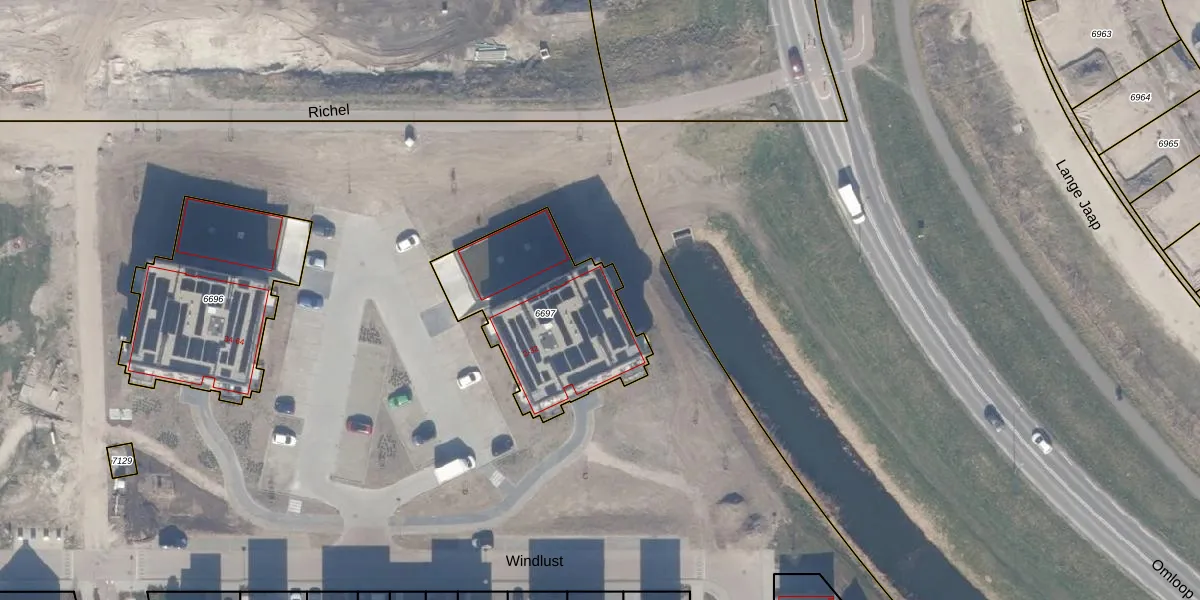 Het perceel waarop Windlust 12 staat heeft een oppervlakte van 693 m². Dit is een groot perceel. De perceeloppervlakte wordt geregistreerd door het Kadaster. Gedetailleerde informatie over de maten van dit perceel kunt u vinden in het rapport Kadastrale kaart met maatvoering van Windlust 12.