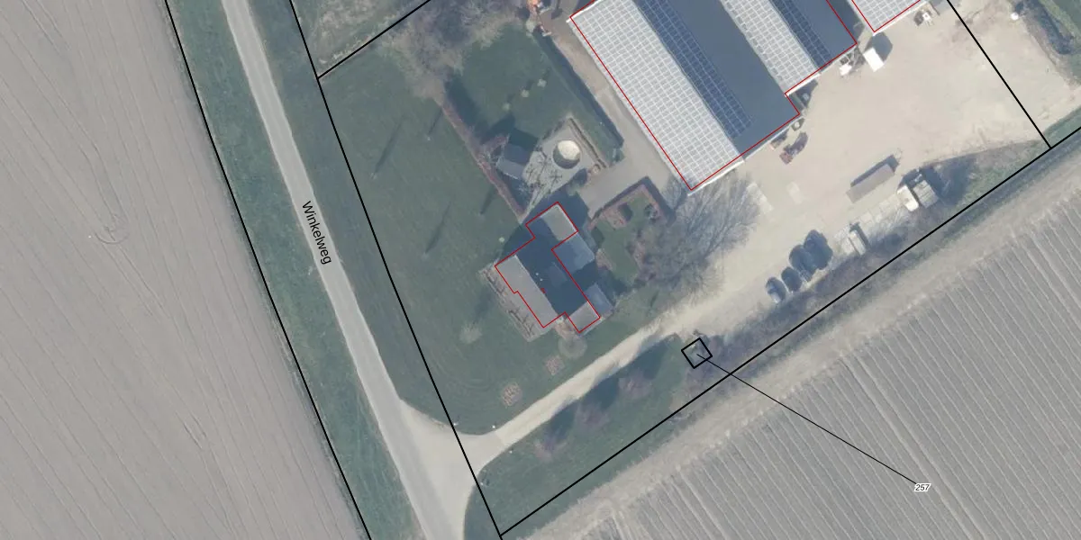 Het perceel waarop Winkelweg 2 staat heeft een oppervlakte van 1,0 ha. Dit is een zeer groot perceel. De perceeloppervlakte wordt geregistreerd door het Kadaster. Gedetailleerde informatie over de maten van dit perceel kunt u vinden in het rapport Kadastrale kaart met maatvoering van Winkelweg 2.