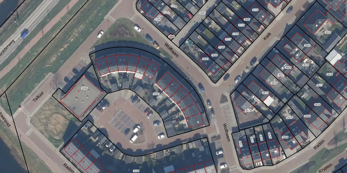 Wolfraam 9 is gelegen op kadastraal perceel ZWD03E3595. Deze kadastrale aanduiding is uniek en wordt gebruikt door het Kadaster om eigendomsrechten en andere zakelijke rechten vast te leggen. Het perceel maakt onderdeel uit van de kadastrale gemeente Zeewolde.