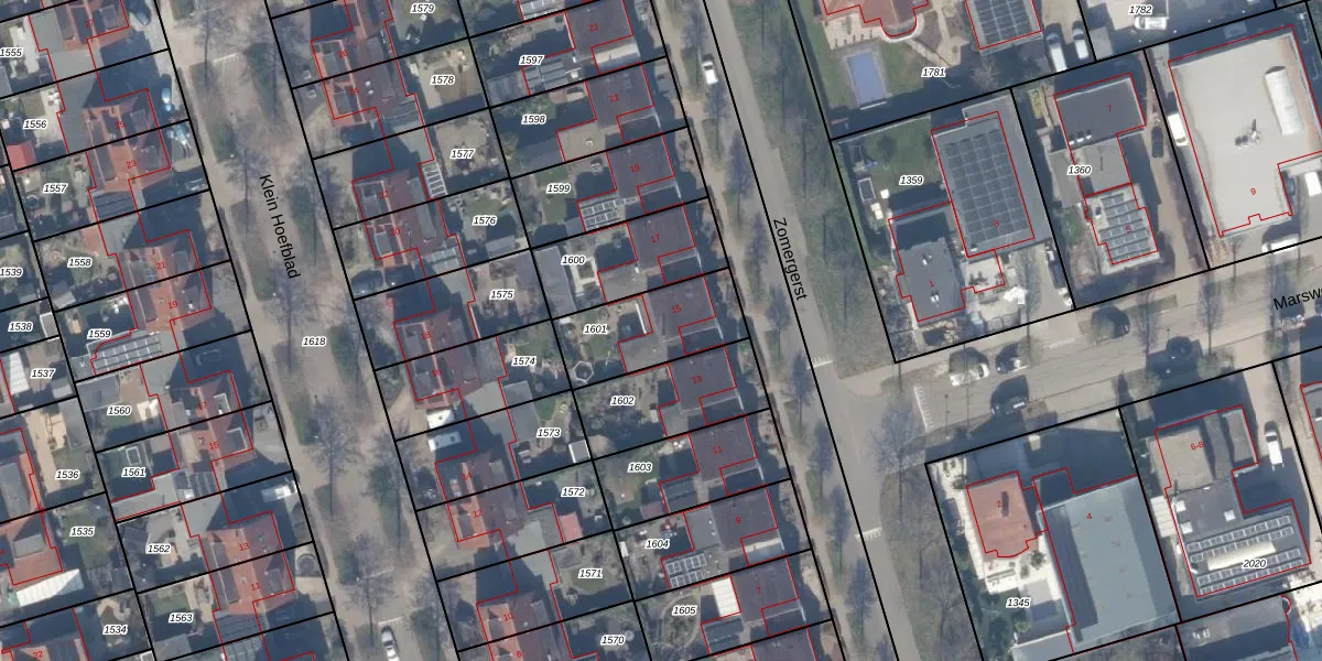 Gebruik de zoekbalk of klik op een perceel voor informatie over de adressen binnen dit perceel.