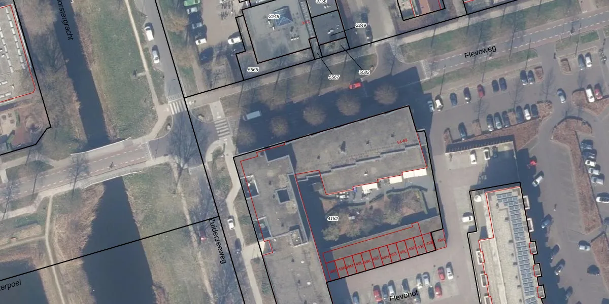 Het perceel waarop het adres ligt is ZWD03-A-4182. De afkorting 'ZWD03' staat voor kadastrale gemeente Zeewolde. Het perceel is 3763 m² groot. Dat is kleiner dan de gemiddelde perceeloppervlakte in Zeewolde, dat op 1,9 ha ligt. Het grootste perceel in de kadastrale gemeente is 6,16 km². Het kleinste perceel heeft een oppervlakte van 0 m². Op het perceel zijn 66 adressen aanwezig. De laatste wijziging in het de Basisregistratie Kadaster (BRK) was op 24-05-2017.