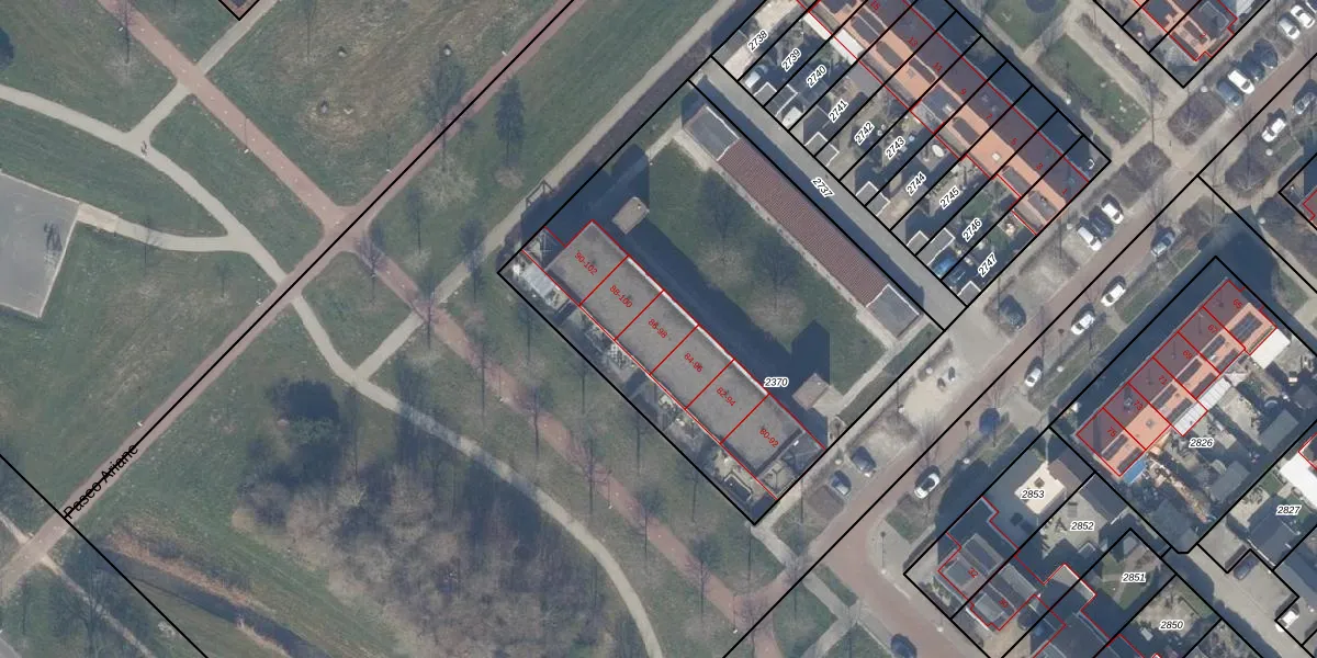 Het perceel waarop het adres ligt is ZWD03-E-2370. De afkorting 'ZWD03' staat voor kadastrale gemeente Zeewolde. De gemiddelde perceelgrootte in Zeewolde is 1,9 ha. Dit perceel is kleiner: de perceeloppervlakte bedraagt 2250 m². Het grootste perceel in de kadastrale gemeente is 6,16 km². Het kleinste perceel heeft een oppervlakte van 0 m². Op het perceel zijn 12 adressen aanwezig. De laatste wijziging in het de Basisregistratie Kadaster (BRK) was op 10-02-2011.