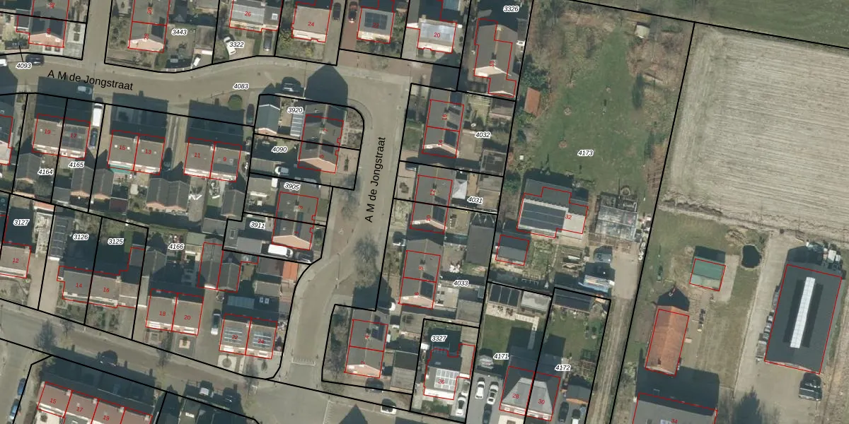 A M de Jongstraat 10 is gelegen op kadastraal perceel RPN00A4033. Deze kadastrale aanduiding is uniek en wordt gebruikt door het Kadaster om eigendomsrechten en andere zakelijke rechten vast te leggen. Het perceel maakt onderdeel uit van de kadastrale gemeente Rucphen.