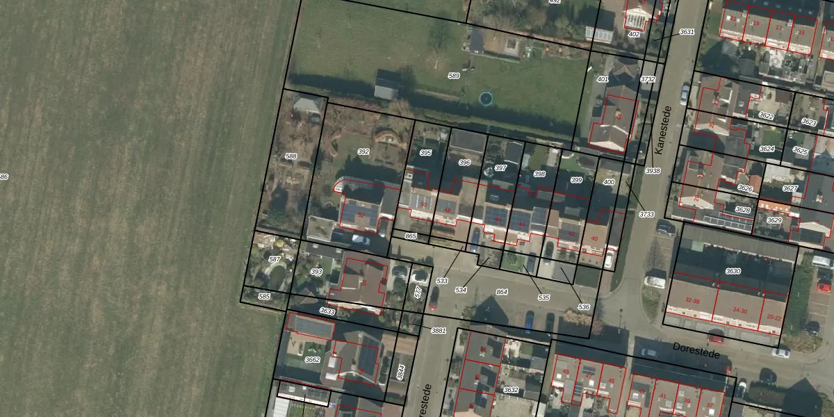 Het perceel waarop Dorestede 50 staat heeft een oppervlakte van 235 m². Dit is een middelgroot perceel. De perceeloppervlakte wordt geregistreerd door het Kadaster. Gedetailleerde informatie over de maten van dit perceel kunt u vinden in het rapport Kadastrale kaart met maatvoering van Dorestede 50.