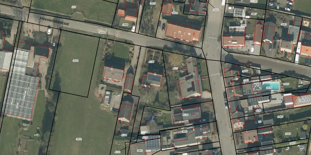 Heesterbosstraat 1 is gelegen op kadastraal perceel RPN00A4135. Deze kadastrale aanduiding is uniek en wordt gebruikt door het Kadaster om eigendomsrechten en andere zakelijke rechten vast te leggen. Het perceel maakt onderdeel uit van de kadastrale gemeente Rucphen.
