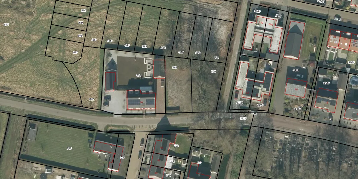Het adres is gelegen op perceel 891 in de sectie N en de kadastrale gemeente Rucphen. De kadastrale aanduiding is aldus RPN00-N-891. Het perceel is 457 m² groot. Dat is kleiner dan de gemiddelde perceeloppervlakte in Rucphen, dat op 4095,22 m² ligt. De grootste perceeloppervlakte in de kadastrale gemeente is 43,3 ha. De kleinste oppervlakte bedraagt 0 m². Dit is het enige adres dat aanwezig is op het perceel. In de Basisregistratie Kadaster (BRK) werden de grenzen van het perceel geregistreerd op 26-02-2025.