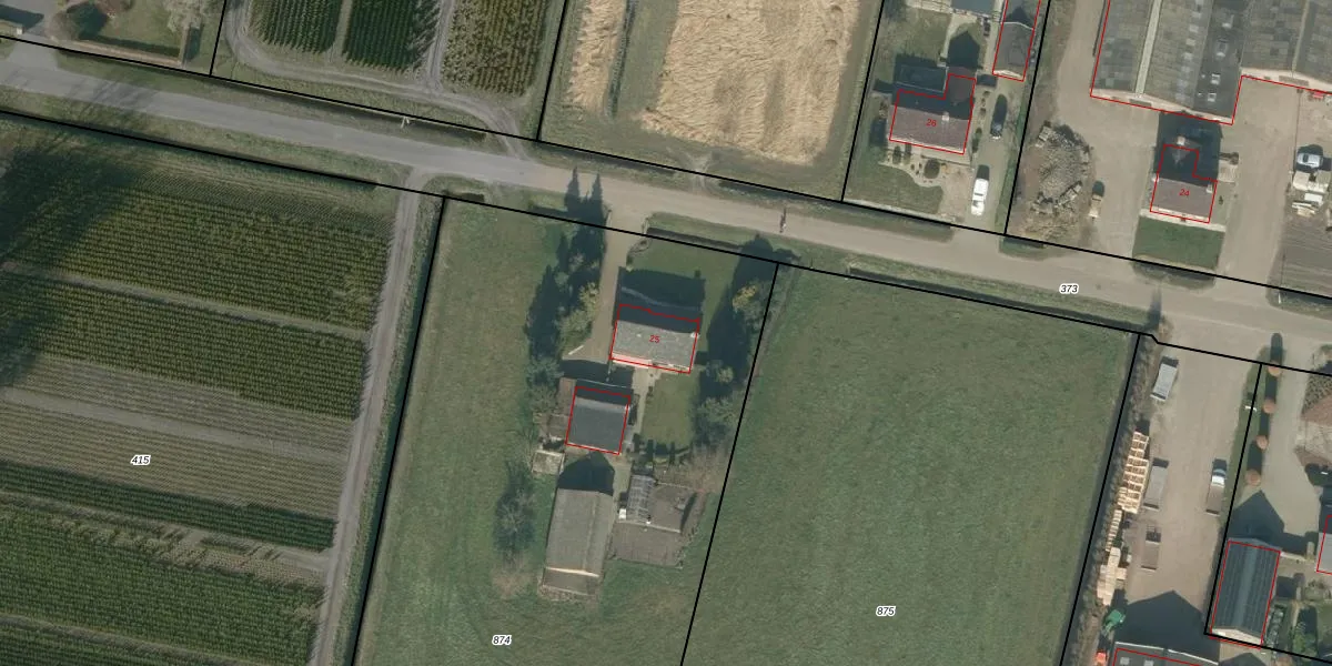 Hoefstraat 25 is gelegen op kadastraal perceel RPN00N874. Deze kadastrale aanduiding is uniek en wordt gebruikt door het Kadaster om eigendomsrechten en andere zakelijke rechten vast te leggen. Het perceel maakt onderdeel uit van de kadastrale gemeente Rucphen.