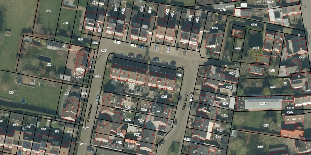 Kanestede 13 is gelegen op kadastraal perceel RPN00A3831. Deze kadastrale aanduiding is uniek en wordt gebruikt door het Kadaster om eigendomsrechten en andere zakelijke rechten vast te leggen. Het perceel maakt onderdeel uit van de kadastrale gemeente Rucphen.