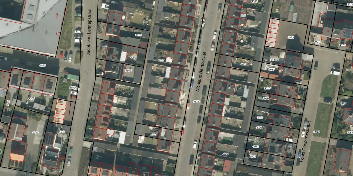 Het perceel waarop Nicolaas Beetsstraat 21 staat heeft een oppervlakte van 5451 m². Dit is een zeer groot perceel. De perceeloppervlakte wordt geregistreerd door het Kadaster. Gedetailleerde informatie over de maten van dit perceel kunt u vinden in het rapport Kadastrale kaart met maatvoering van Nicolaas Beetsstraat 21.