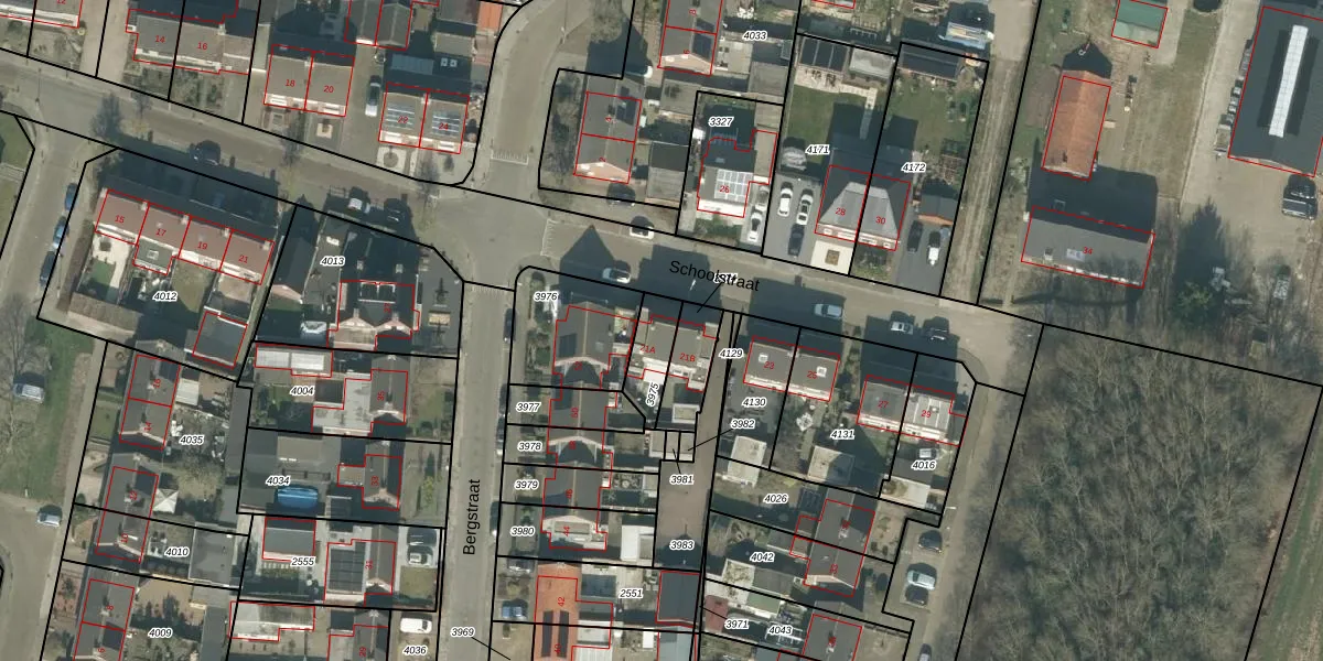 Schoolstraat 21-A is gelegen op kadastraal perceel RPN00A3975. Deze kadastrale aanduiding is uniek en wordt gebruikt door het Kadaster om eigendomsrechten en andere zakelijke rechten vast te leggen. Het perceel maakt onderdeel uit van de kadastrale gemeente Rucphen.