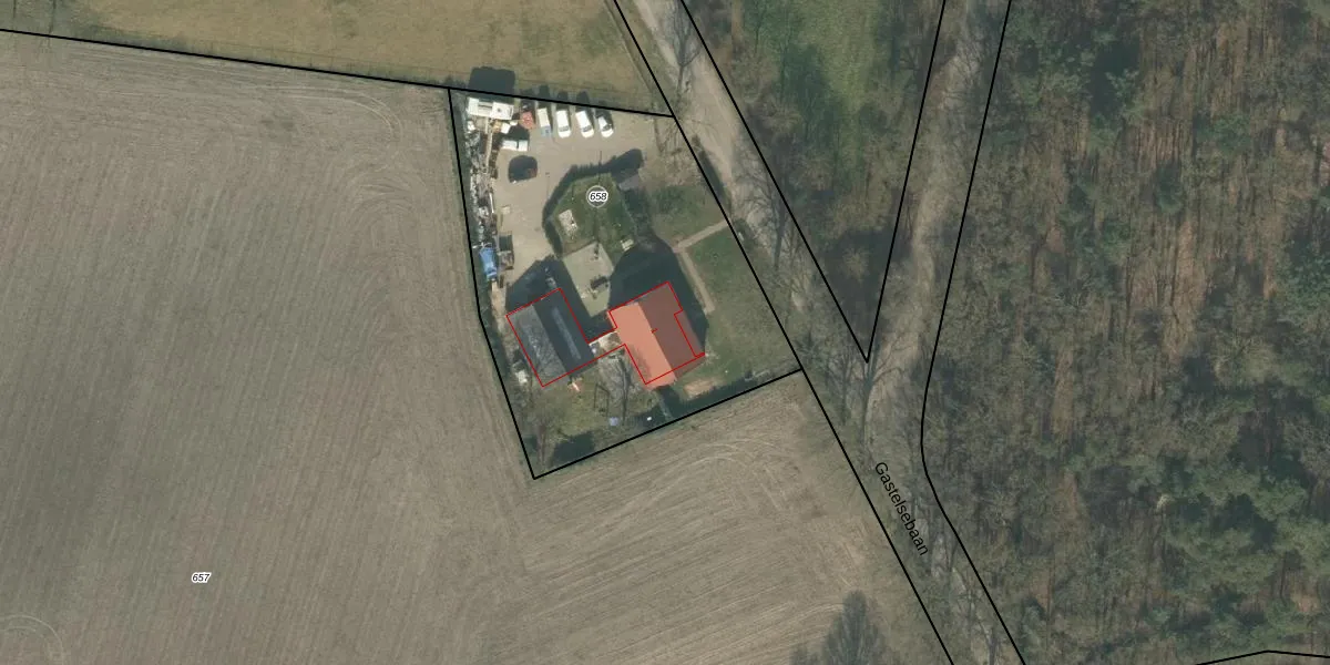 Het adres ligt op het perceel RPN00-N-658, dat zich in de kadastrale gemeente Rucphen bevindt. De gemiddelde perceelgrootte in Rucphen is 4095,48 m². Dit perceel is kleiner: de perceeloppervlakte bedraagt 1975 m². Het kleinste perceel in de kadastrale gemeente is 0 m² groot. De grootste perceeloppervlakte is 43,3 ha. Dit is het enige adres dat aanwezig is op het perceel. De huidige grenzen van het perceel zijn digitaal in de Basisregistratie Kadaster (BRK) geregistreerd op 16-09-2009.