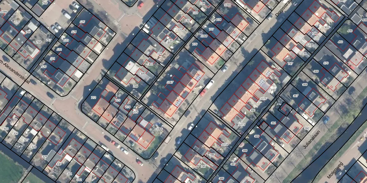 Het perceel waarop Dorpsstraat 10 staat heeft een oppervlakte van 848 m². Dit is een groot perceel. De perceeloppervlakte wordt geregistreerd door het Kadaster. Gedetailleerde informatie over de maten van dit perceel kunt u vinden in het rapport Kadastrale kaart met maatvoering van Dorpsstraat 10.