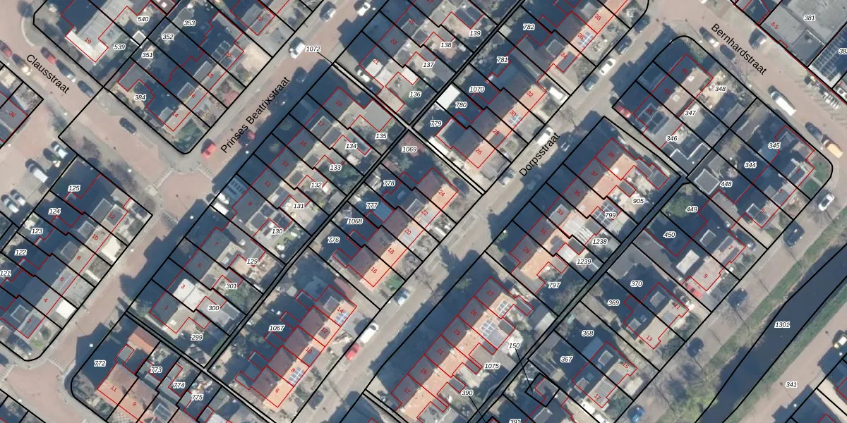 Gebruik de zoekbalk of klik op een perceel voor informatie over de adressen binnen dit perceel.