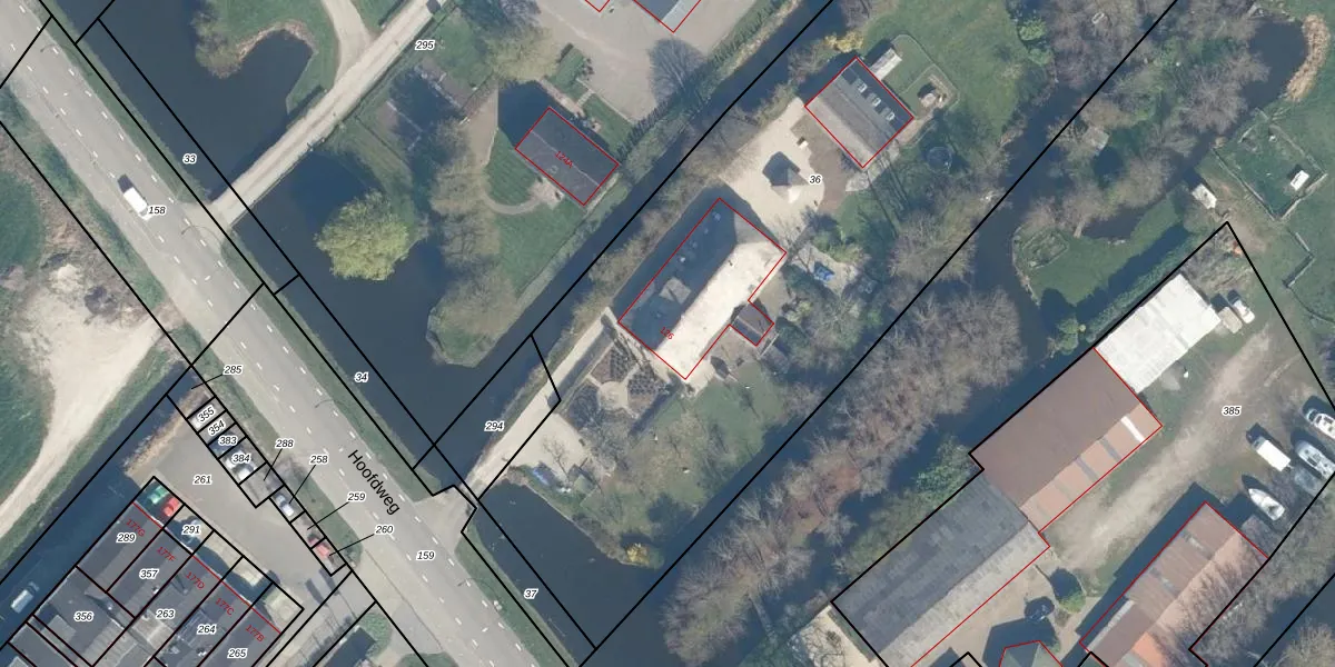 Het perceel waarop Hoofdweg 126 staat heeft een oppervlakte van 4730 m². Dit is een zeer groot perceel. De perceeloppervlakte wordt geregistreerd door het Kadaster. Gedetailleerde informatie over de maten van dit perceel kunt u vinden in het rapport Kadastrale kaart met maatvoering van Hoofdweg 126.