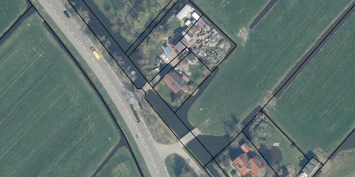 Het perceel waarop Hoofdweg 148 staat heeft een oppervlakte van 545 m². Dit is een groot perceel. De perceeloppervlakte wordt geregistreerd door het Kadaster. Gedetailleerde informatie over de maten van dit perceel kunt u vinden in het rapport Kadastrale kaart met maatvoering van Hoofdweg 148.
