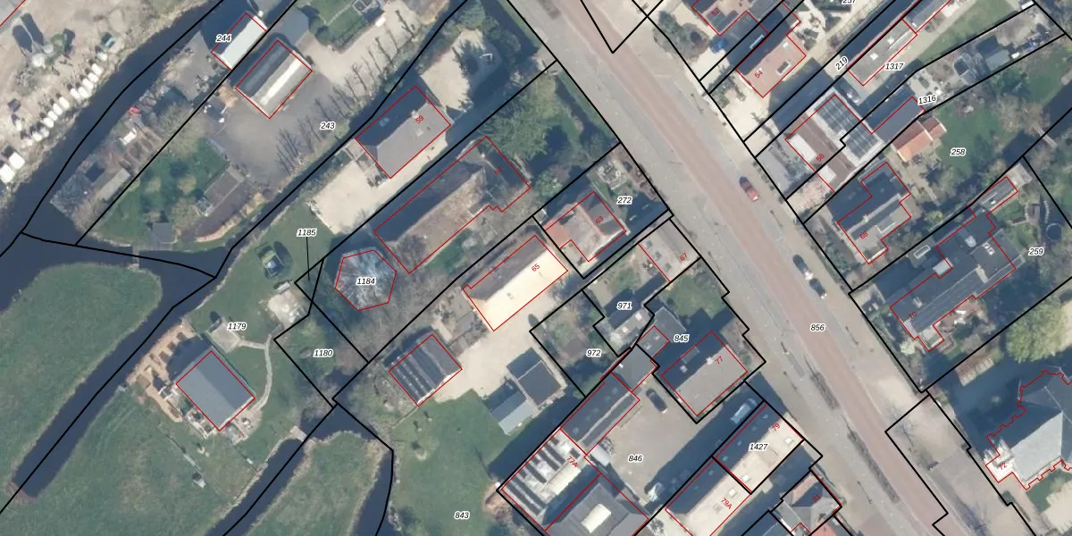 Het perceel waarop Hoofdweg 65 staat heeft een oppervlakte van 3370 m². Dit is een zeer groot perceel. De perceeloppervlakte wordt geregistreerd door het Kadaster. Gedetailleerde informatie over de maten van dit perceel kunt u vinden in het rapport Kadastrale kaart met maatvoering van Hoofdweg 65.