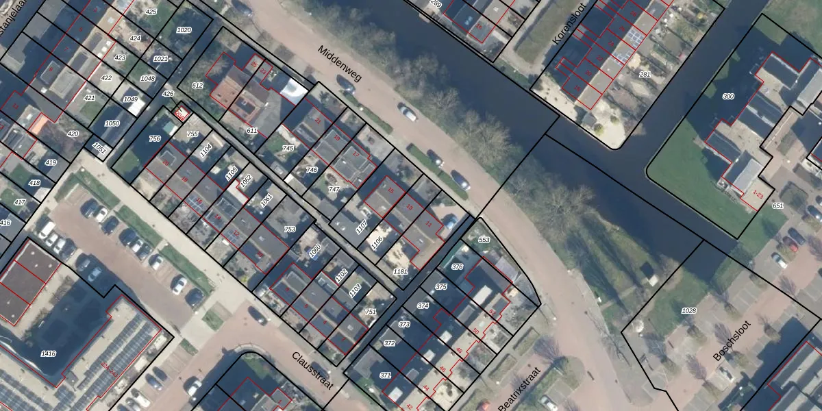 Het perceel waarop Middenweg 13 staat heeft een oppervlakte van 145 m². Dit is een middelgroot perceel. De perceeloppervlakte wordt geregistreerd door het Kadaster. Gedetailleerde informatie over de maten van dit perceel kunt u vinden in het rapport Kadastrale kaart met maatvoering van Middenweg 13.