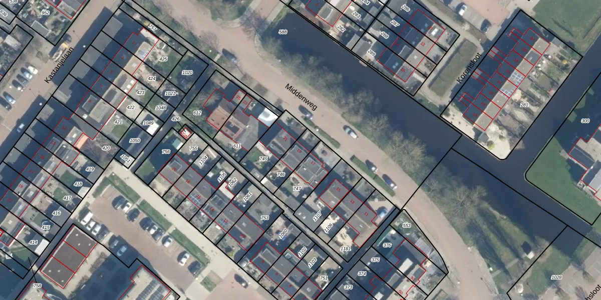 Het perceel waarop Middenweg 19 staat heeft een oppervlakte van 142 m². Dit is een middelgroot perceel. De perceeloppervlakte wordt geregistreerd door het Kadaster. Gedetailleerde informatie over de maten van dit perceel kunt u vinden in het rapport Kadastrale kaart met maatvoering van Middenweg 19.