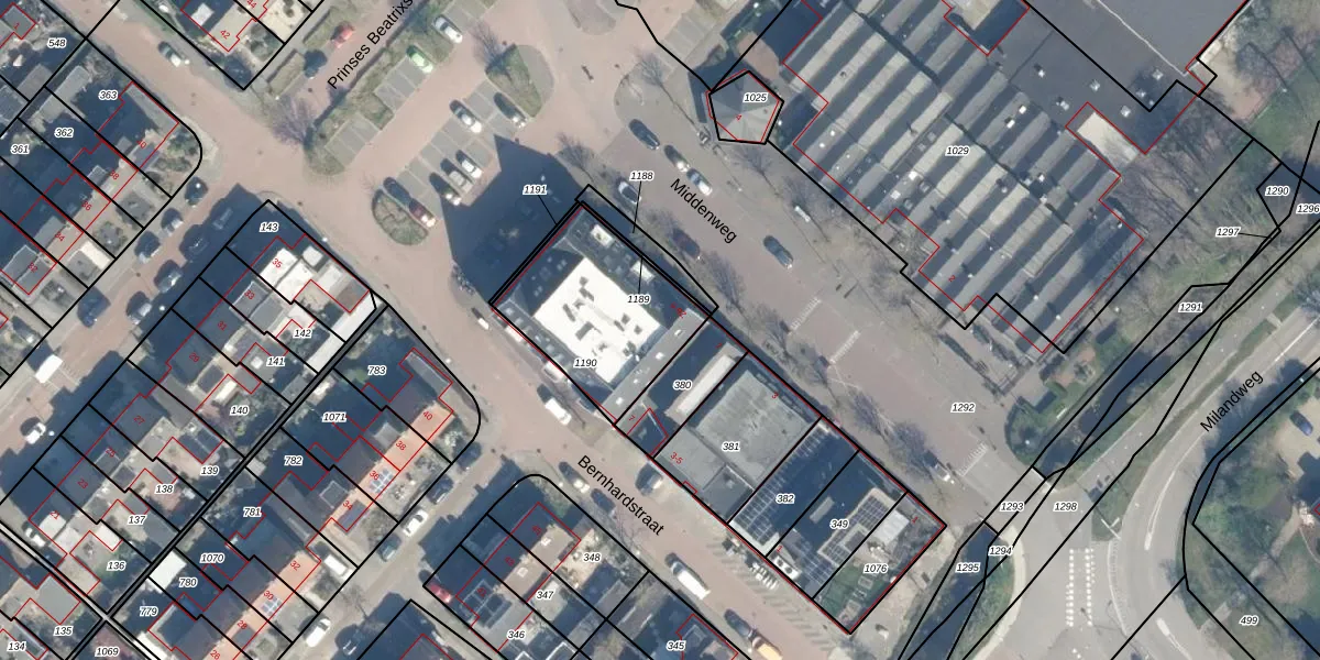 Het perceel waarop Middenweg 9-W staat heeft een oppervlakte van 552 m². Dit is een groot perceel. De perceeloppervlakte wordt geregistreerd door het Kadaster. Gedetailleerde informatie over de maten van dit perceel kunt u vinden in het rapport Kadastrale kaart met maatvoering van Middenweg 9-W.