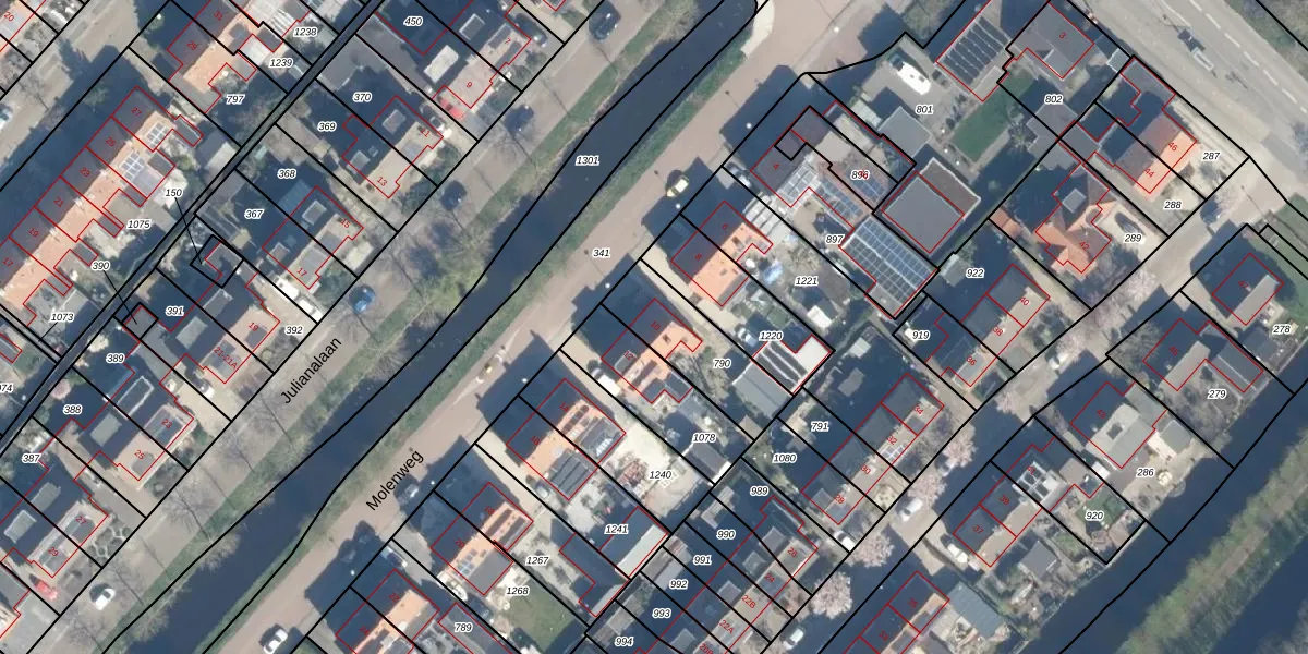 Het perceel waarop Molenweg 10 staat heeft een oppervlakte van 288 m². Dit is een middelgroot perceel. De perceeloppervlakte wordt geregistreerd door het Kadaster. Gedetailleerde informatie over de maten van dit perceel kunt u vinden in het rapport Kadastrale kaart met maatvoering van Molenweg 10.