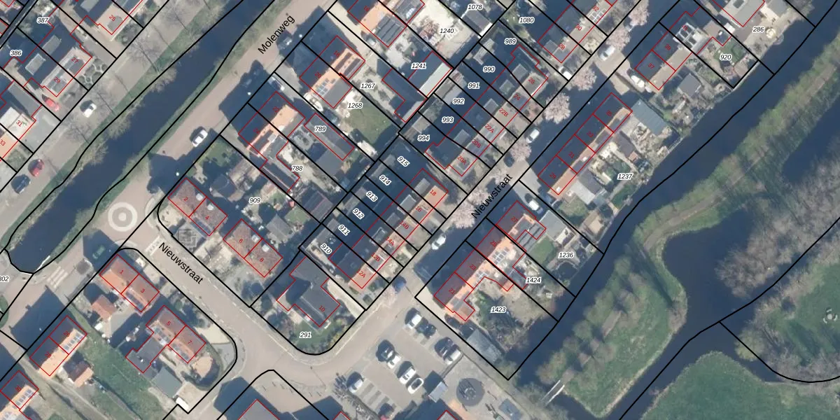 Het perceel waarop Nieuwstraat 16 staat heeft een oppervlakte van 111 m². Dit is een middelgroot perceel. De perceeloppervlakte wordt geregistreerd door het Kadaster. Gedetailleerde informatie over de maten van dit perceel kunt u vinden in het rapport Kadastrale kaart met maatvoering van Nieuwstraat 16.
