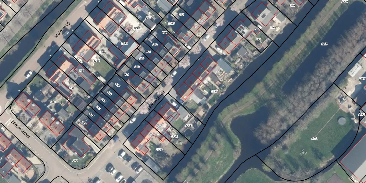 Het perceel waarop Nieuwstraat 29 staat heeft een oppervlakte van 1380 m². Dit is een zeer groot perceel. De perceeloppervlakte wordt geregistreerd door het Kadaster. Gedetailleerde informatie over de maten van dit perceel kunt u vinden in het rapport Kadastrale kaart met maatvoering van Nieuwstraat 29.