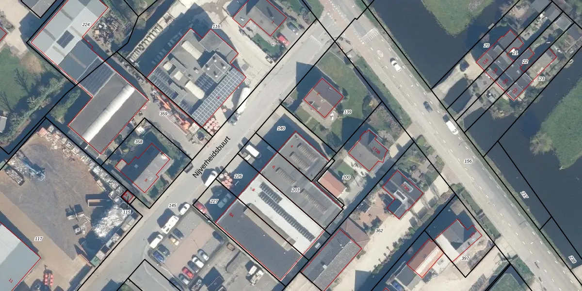 Het perceel waarop Nijverheidsbuurt 4 staat heeft een oppervlakte van 334 m². Dit is een groot perceel. De perceeloppervlakte wordt geregistreerd door het Kadaster. Gedetailleerde informatie over de maten van dit perceel kunt u vinden in het rapport Kadastrale kaart met maatvoering van Nijverheidsbuurt 4.