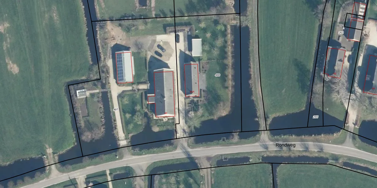 Rondweg 40-A is gelegen op kadastraal perceel ZVD00F488. Deze kadastrale aanduiding is uniek en wordt gebruikt door het Kadaster om eigendomsrechten en andere zakelijke rechten vast te leggen. Het perceel maakt onderdeel uit van de kadastrale gemeente Zegveld.