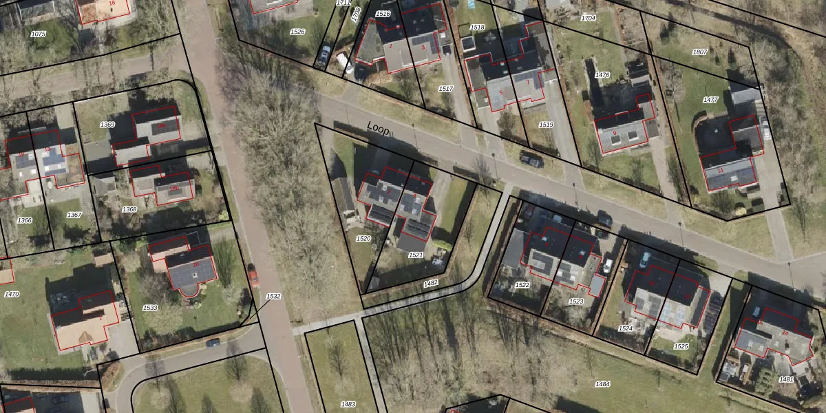 Gebruik de zoekbalk of klik op een perceel voor informatie over de adressen binnen dit perceel.