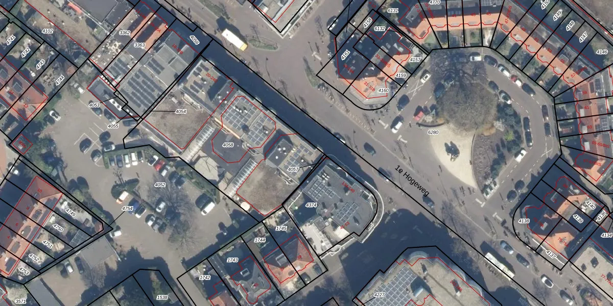 Het perceel waarop 1e Hogeweg 24-D staat heeft een oppervlakte van 1642 m². Dit is een zeer groot perceel. De perceeloppervlakte wordt geregistreerd door het Kadaster. Gedetailleerde informatie over de maten van dit perceel kunt u vinden in het rapport Kadastrale kaart met maatvoering van 1e Hogeweg 24-D.